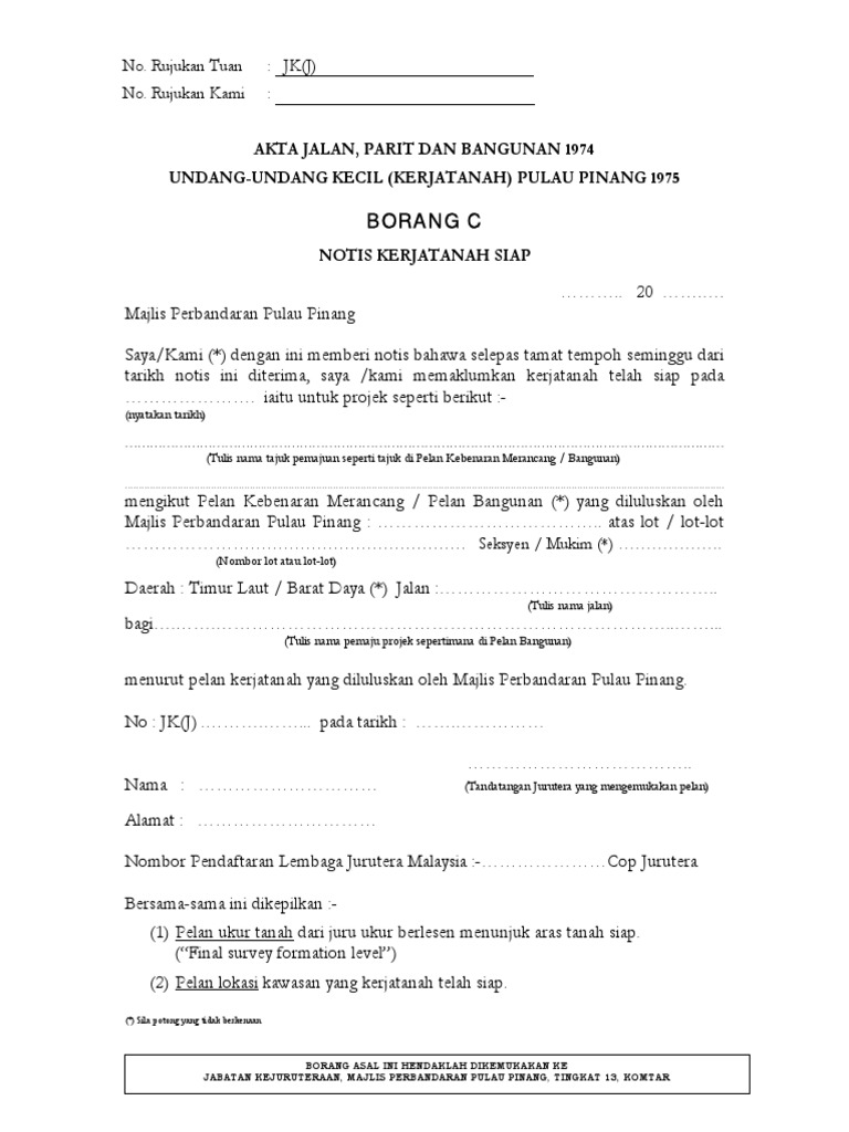 (a) pelan bangunan untuk pendirian bangunan belum mendapat kelulusan pihak berkuasa tempatan; Akta tabung pertahanan negara (pembubaran dan pemindahan) 1984. 3) akta 133 akta jalan, parit & bangunan 1974. Saya / kami akan mematuhi dengan sepenuhnya kehendak akta jalan, parit dan. Niosh library lot 1, jalan 15/1, seksyen 15, 43650 bandar baru bangi, selangor. Akta jalan, parit dan bangunan, 1974 (akta 133). Kacauganggu disebabkan oleh pembuangan sampah sarap dielakkan. Bambu dan gypsum sebagai bahan bangunan penyusun dinding relatif memiliki harga lebih murah ketimbang batu bata. Saya bercadang untuk memulakan kerja tanah iaitu. Akhirnya, hari ini mobil tersebut dipindahkan oleh pemiliknya. Membina dan menyenggara parit dan alur air6. Jalan, parit dan bangunan (pindaan) 13 (b) pelan. Peranan dan kuasa pbt mengatur, mengawal, merancang pemajuan dan penggunaan semua tanah dan bangunan di dalam kawasan tadbirannya.