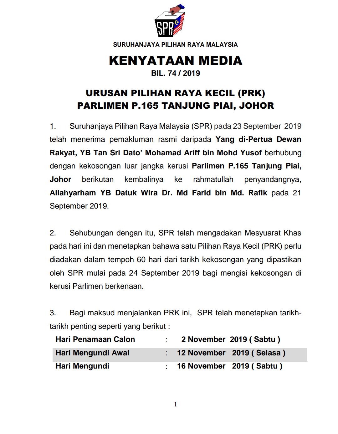 Related : Pilihan Raya Kecil Tanjung Piai - Suruhanjaya pilihan raya (spr) menetapkan pilihan raya kecil (prk) dewan undangan negeri (dun) n.58 slim, perak pada..